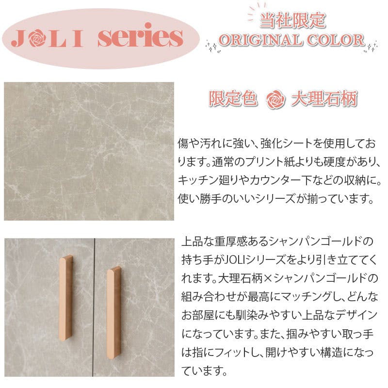 【JOLI】高級感溢れる大理石柄とシャンパンゴールドの上品な組合わせの幅90cm 奥行30cm キャビネット 取っ手 カウンター下収納 キッチン キッチン収納 省スペース リビング収納 お皿 収納 ダイニング おしゃれ フェミニン