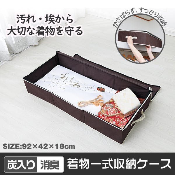 【炭入り消臭着物一式収納ケース A-03 お得な2個セット】 ちあふる((約)92×42×18cm(持ち手含まず)) 着物収納 一式収納 消臭 炭加工 3層構造 大容量 ファスナー 持ち手 保管 JAN:4989409098428