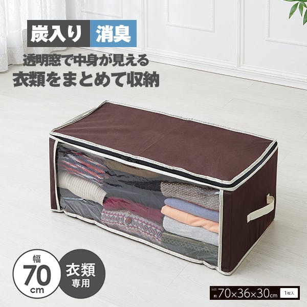 【炭入り消臭衣類収納ケース A-03 お得な3個セット】 ちあふる((約)70×36×30cm(持ち手含まず)) 衣類収納 消臭 透明窓 炭加工 5層構造 持ち手 二段重ね 見える収納 クローゼット JAN:4989409098435