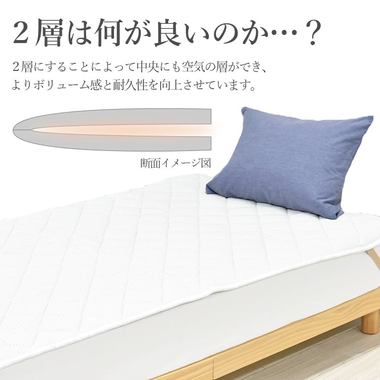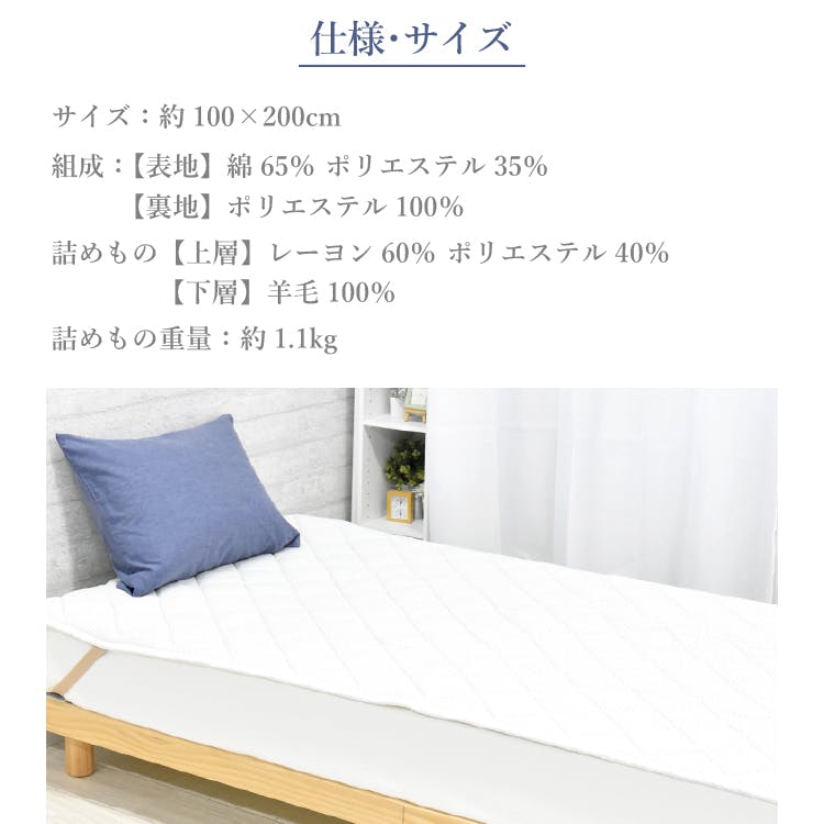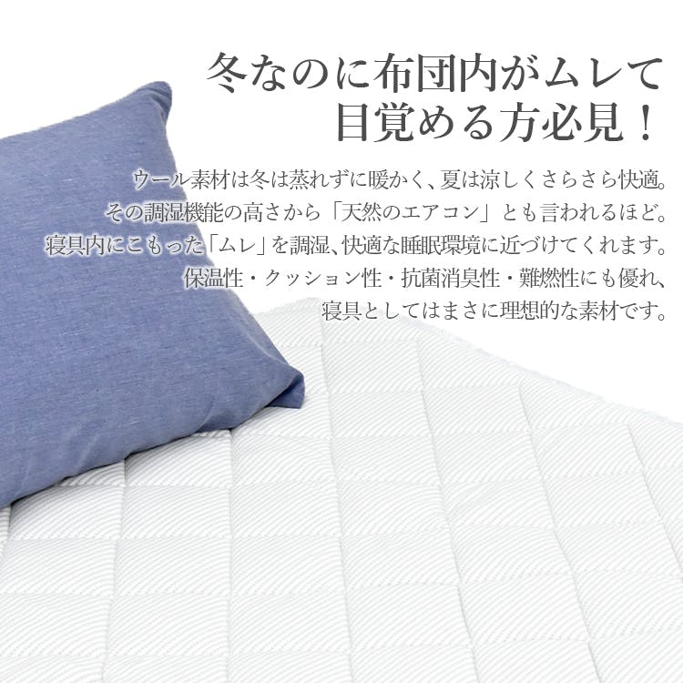 抗菌防臭 ウール 2層 ベッドパッド デオメタフィプレミア加工 4隅ゴムバンド付き 敷きパッド さらさら ムレにくい 丸八真綿 マットレス 敷きふとん シングル 綿 レーヨン ポリエステル メッシュ 100×200cm 洗濯可能 ウォッシャブル 【送料無料】