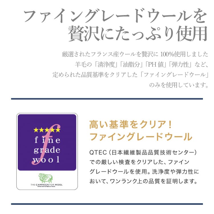 素材:表地/綿65% ポリエステル35%裏地/ポリエステル100% 詰めもの:上層/レーヨン60% ポリエステル40%下層/羊毛100&