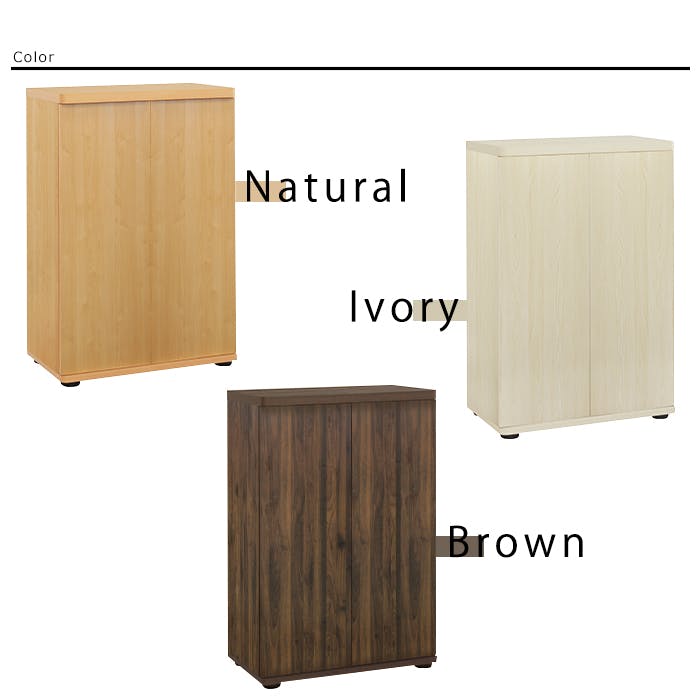 玄関にもリビングにも置けるキャビネット。シンプルデザインだからインテリアにも馴染みやすい。中央の棚は固定、可動棚は4枚付属。収納物に合わせて調節できます。男性用の靴で最大約12足、女性用の靴で最大18足収納可能。