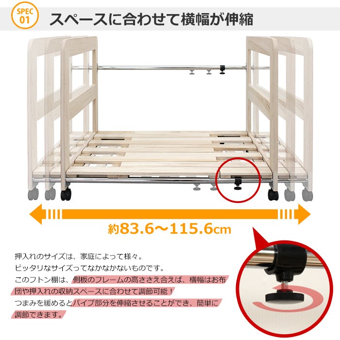 布団収納ラック 1段 桐 スノコ ふとん棚 桐 布団棚 押入れ収納 伸縮式 高さ調節 防虫 すきま収納 布団収納 押し入れ 布団