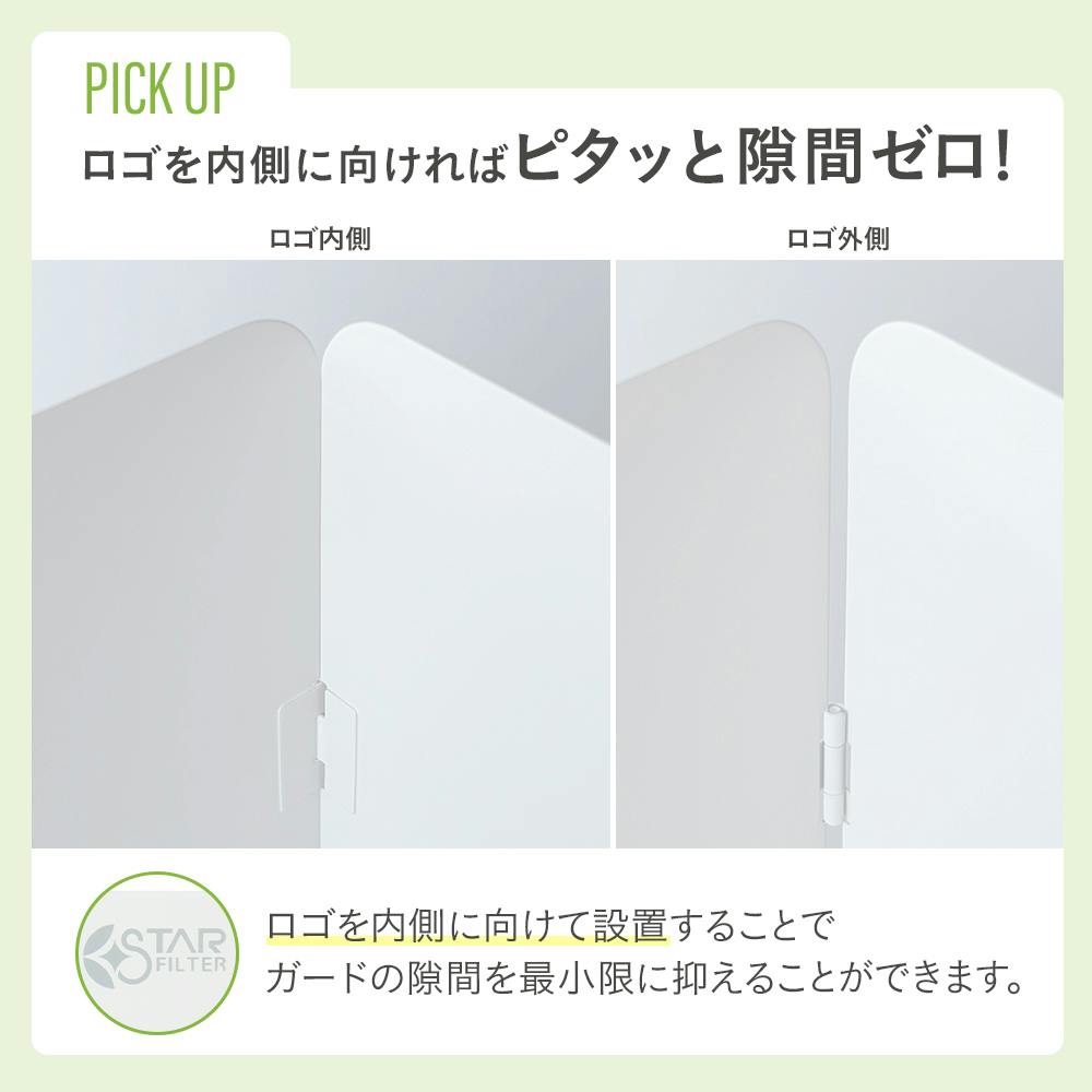 2組セットなので環境にあわせて調理器具のまわりをしっかり囲めます。ガードの隙間を抑えた設計で、気になる油はねもしっかりブロック。(ロゴを内側に向けて使用した場合)