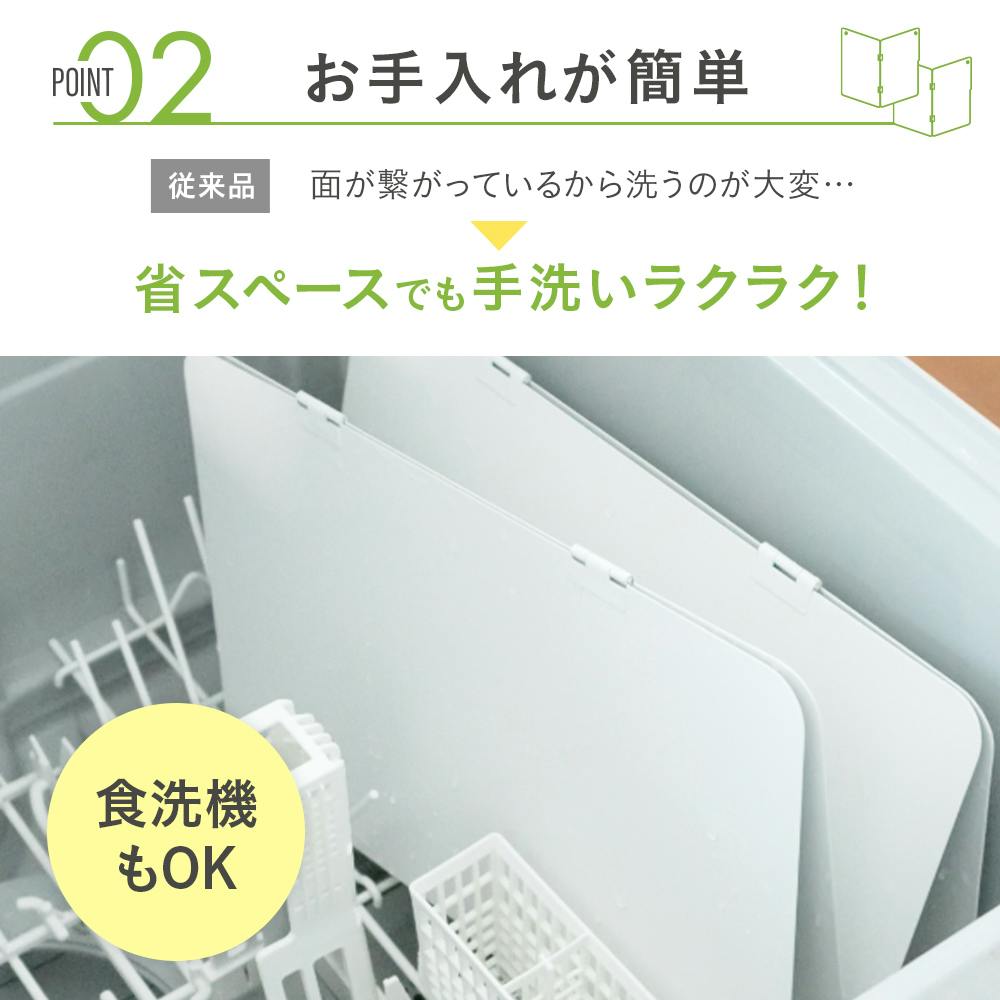 2枚ずつに分けて手洗いできるので省スペースでもスムーズにお 手入れ可能。便利な食洗機対応です。折り返しがないため、油だまりができずお手入れが簡単です。