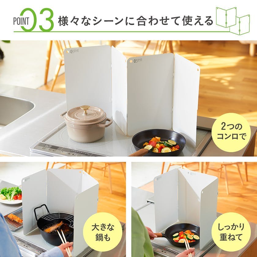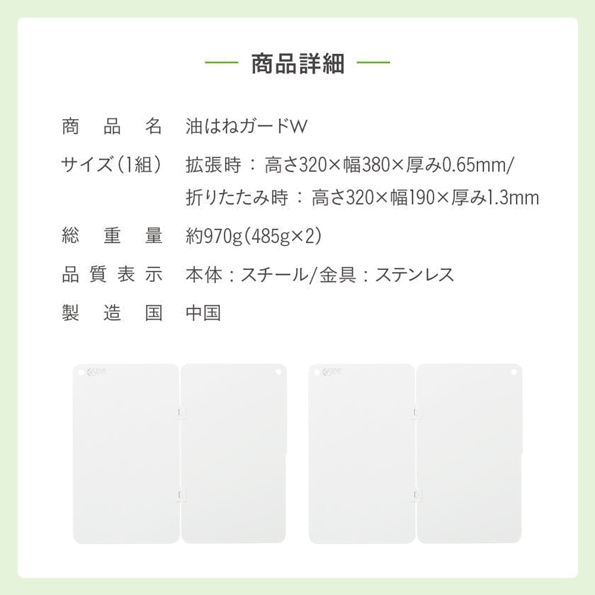 IHクッキングヒーターやガスコンロでの調理時に設置することで、周囲への油や汚れの飛び散りを防ぐ人気アイテム。スターフィルターの「油はねガードW」は、2組セットで調理スペースに合わせて自由に配置可能。使いやすさを追求したコンパクト設計で、調理後の掃除がぐっとラクに。毎日の料理をもっと快適にしてくれます。