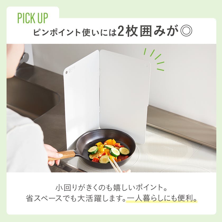 コの字にコンロを囲むことはもちろん、1組(2枚囲み)でちょっとした調理の時にもサッと手軽に使用できます。小回りがきく為、省スペースでも大活躍。一人暮らしにも便利です。