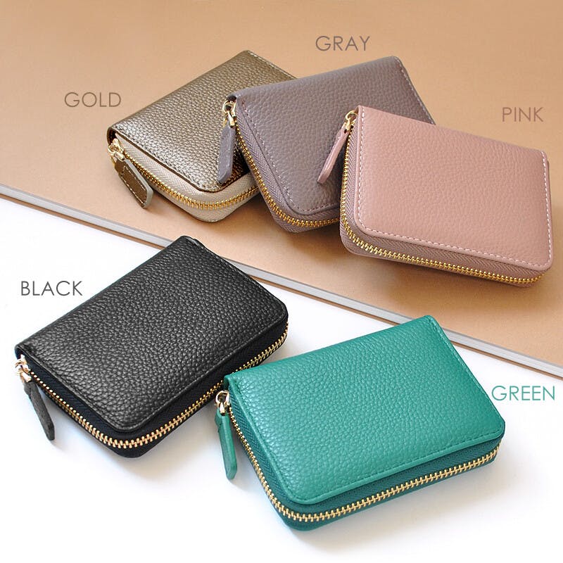 牛革蛇腹ミニ財布 AN-3174 5色展開 【MOMO】/蛇腹カードポケット仕様レディース小銭入れ/グレー #flc-an-3174gly