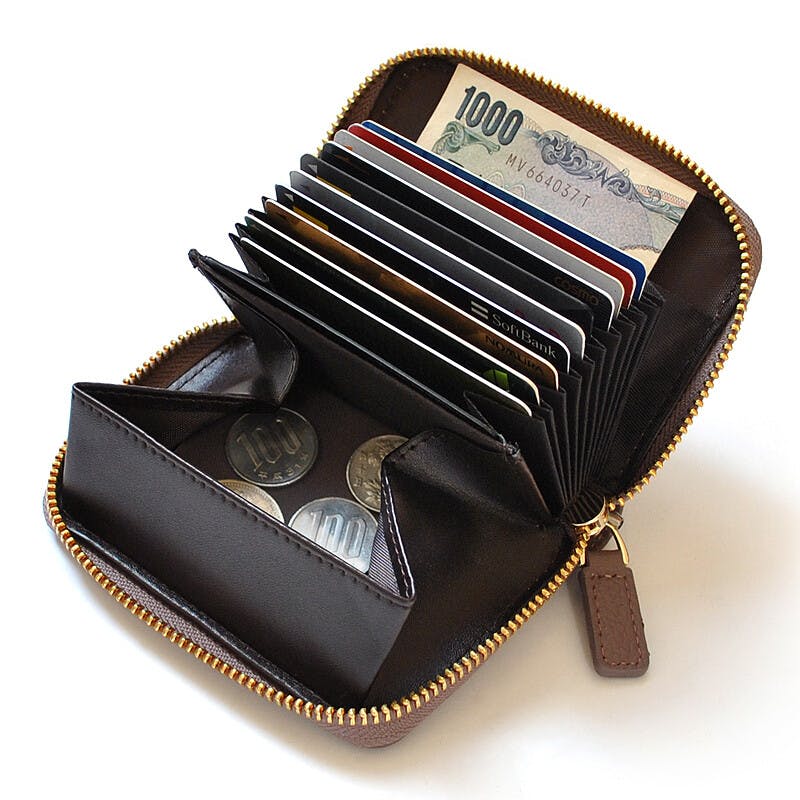 蛇腹ポケット×11(カード×9、札カード兼用×2)、ボックス小銭入れ×1