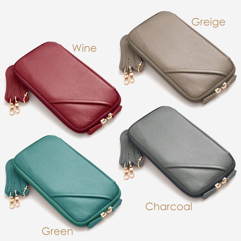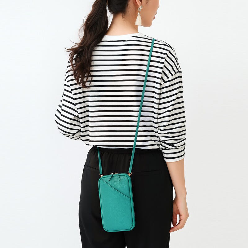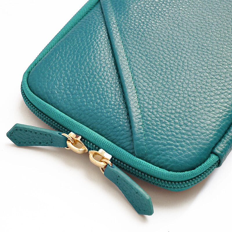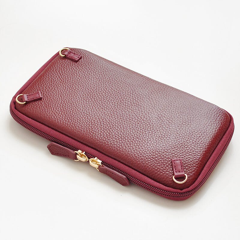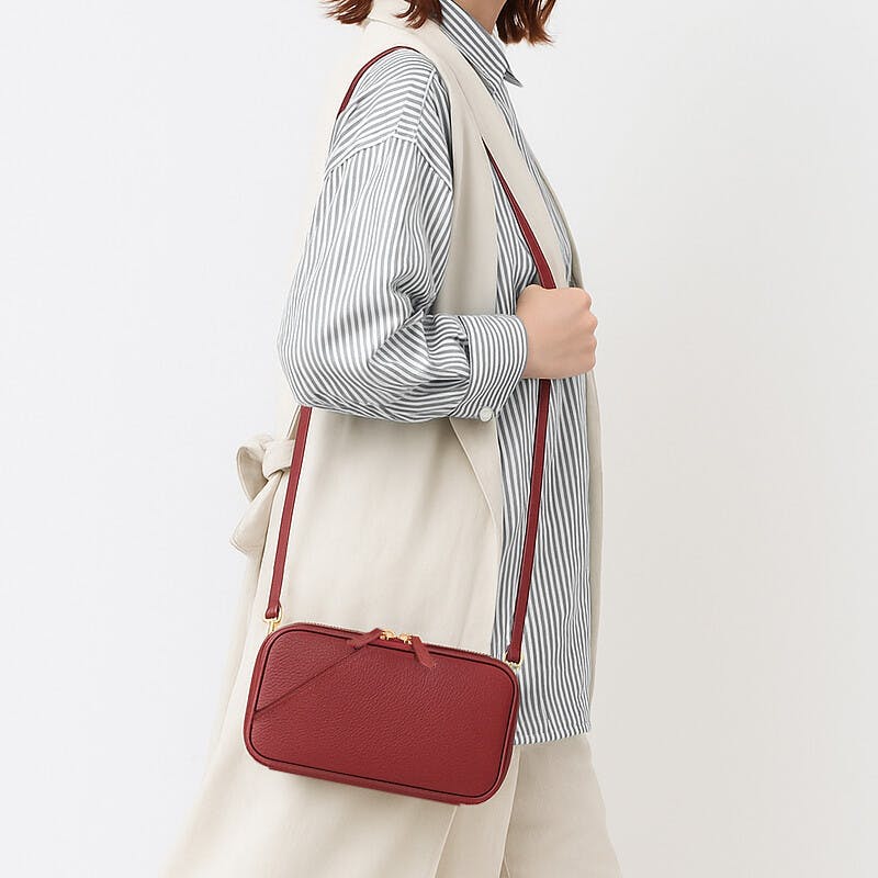 牛革製の縦横2Wayショルダーポーチ。内面は財布のような仕様で、お札・小銭・カードなどがポーチの中身でバラつかず綺麗に収納が可能です。スマホ等の小物も収納でき、外面にもポケットが付いているので実用性も非常に高く仕上がったデザインです。