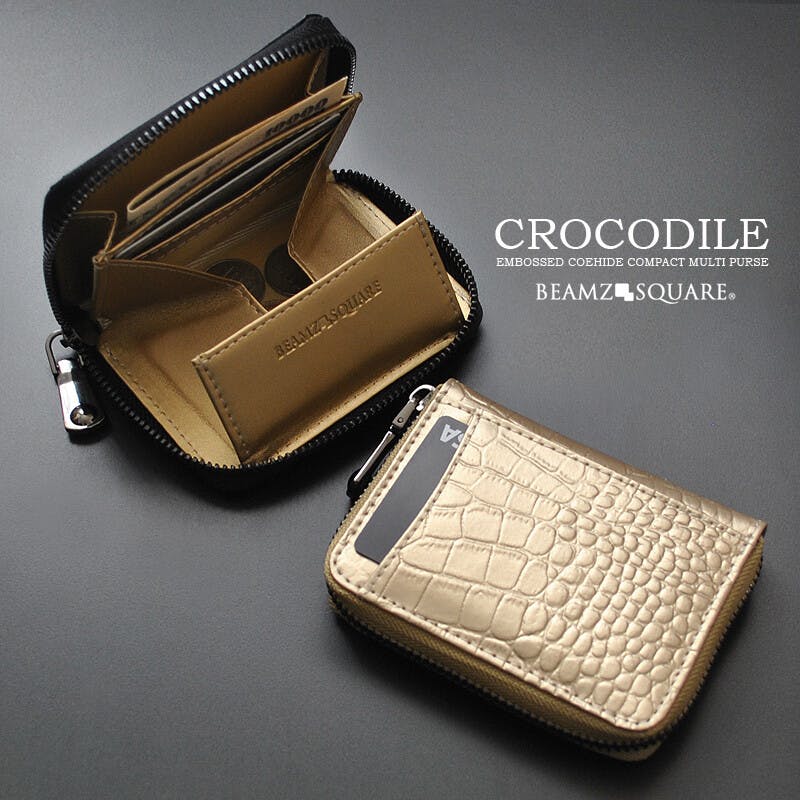 クロコ型押し牛革コインケース BS-3158 【BEAMZSQUARE】/風水/金運/ラウンドファスナー #flc-bs-3158gd