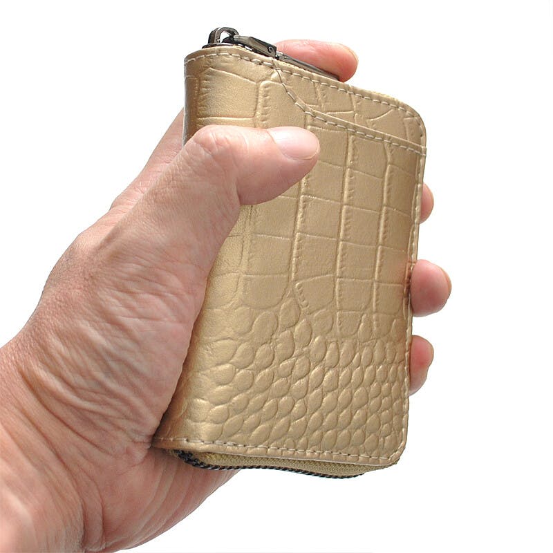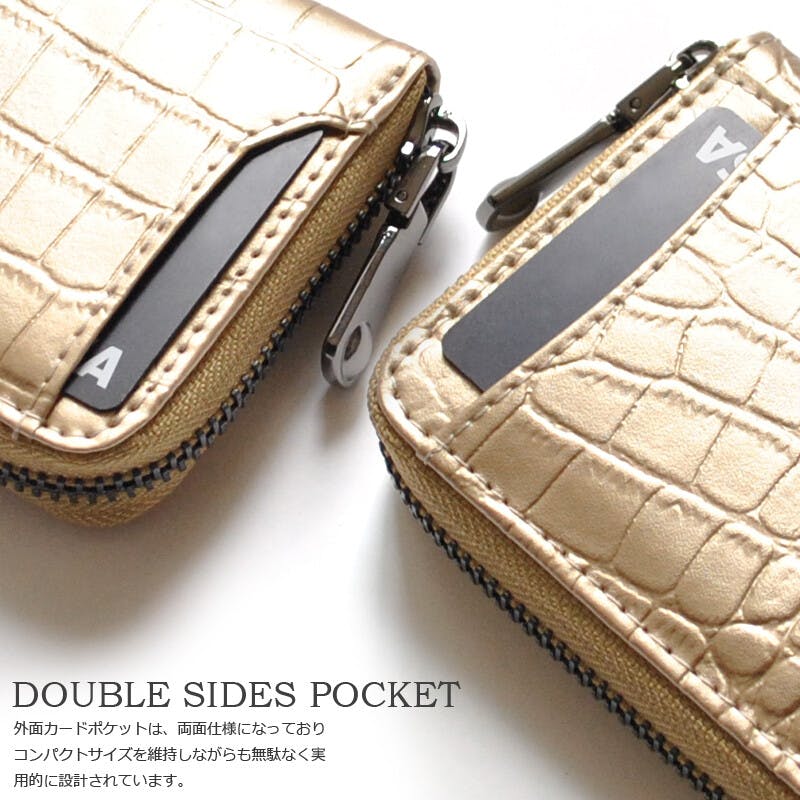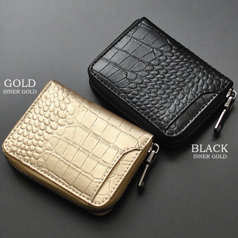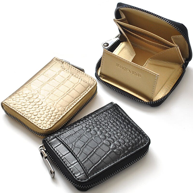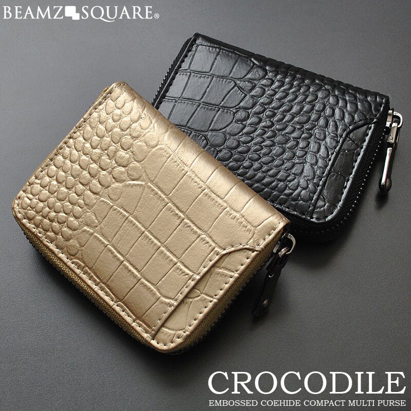 • クロコ型押し牛革コインケース BS-3158 【BEAMZSQUARE】/風水/金運/ラウンドファスナー #flc-bs-3158gd