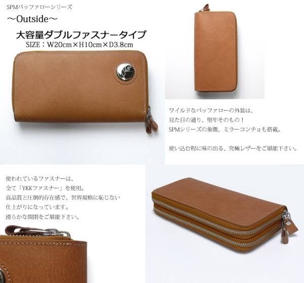 流行のWファスナー大容量ウォレットと、売れ筋のバッファローレザーのコラボレーション!SPMミラーコンチョを継承した、バッファローシリーズの大容量財布ver.カードポケットは圧巻の32か所搭載モデル!使いやすいデザインに加え、良質の素材感を楽しめる逸品です。