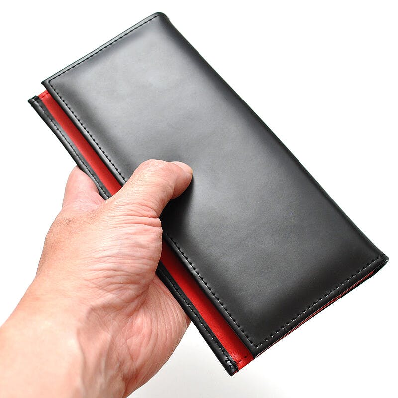馬革を贅沢に使用したシンプルでスタイルを選ばない機能的な長財布です。厳選された5色からインナーカラーをお選び頂けます。非常に軽く、馬革独特のなめらかな手触りが魅力の長財布です。10枚収納可能なカードポケットや幅広のファスナー小銭入れなど収納性も抜群でとても実用的な設計となっています。スリムデザインで、スーツポケット等にもスムーズに出し入れ可能です。