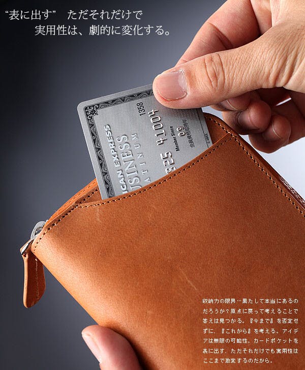 ンのメイン収納。紙幣ポケットとしての機能はもちろんのこと、パスポートや通帳も収納できます。仕切り部分もフリーポケットになっており細かい仕分けも十分できます。