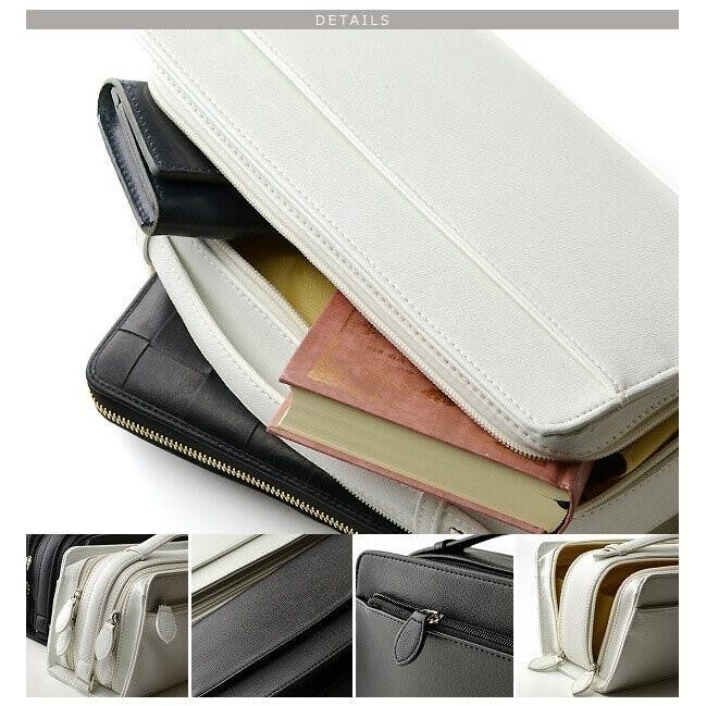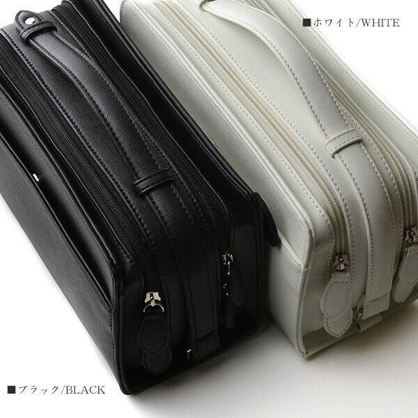 フェイクレザーサフィアーノ柄ダブルファスナーセカンドバッグ No.2042T/ホワイト #flc-no.2042t-wh