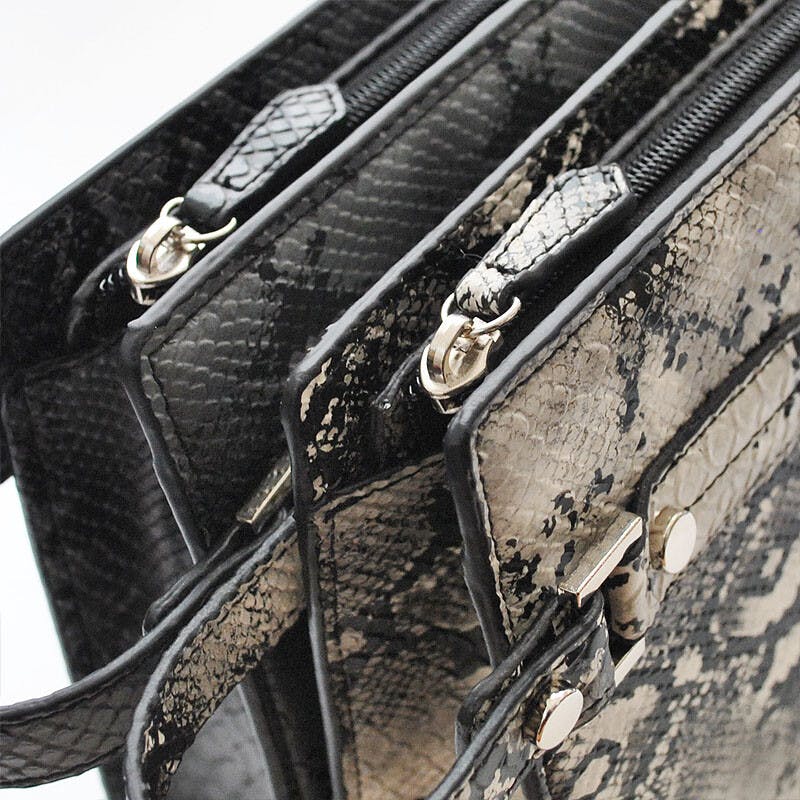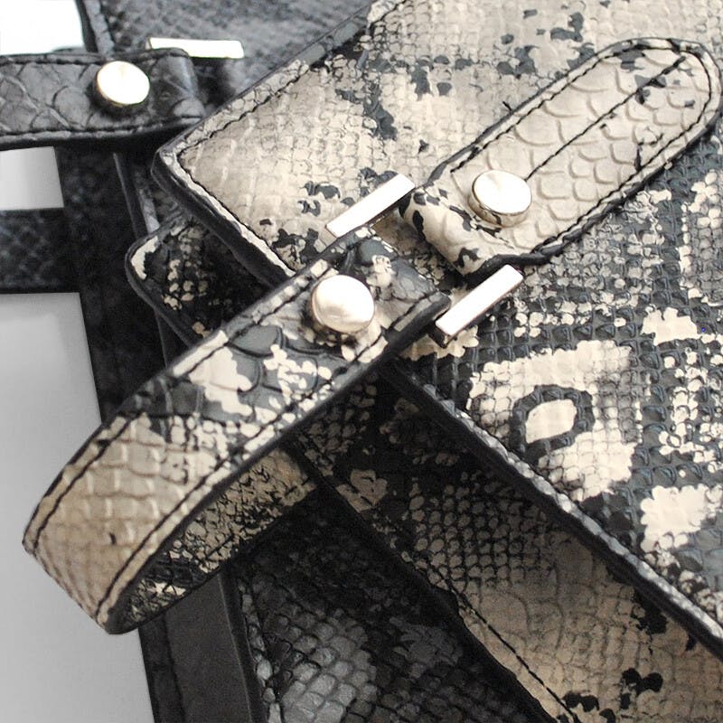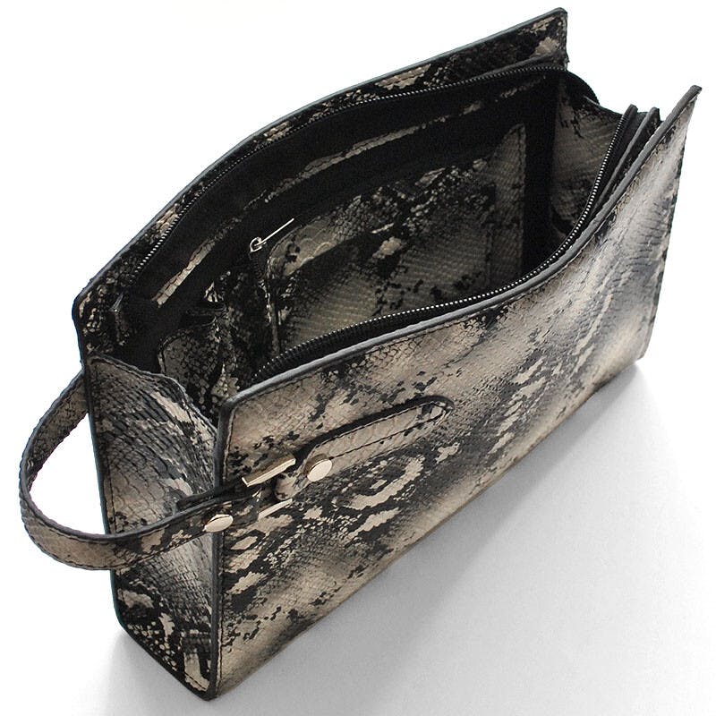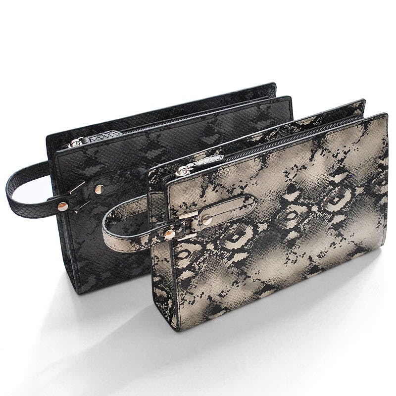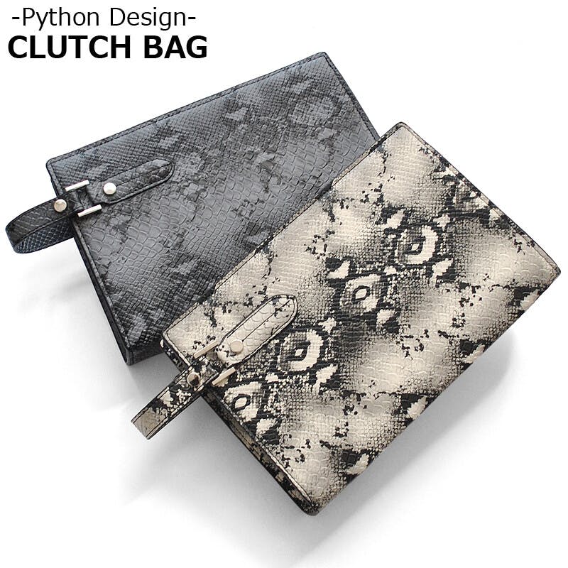 フェイクレザーパイソン柄メンズクラッチバッグ No.2615H/ブラック・ホワイト #flc-no.2615h-bkwh