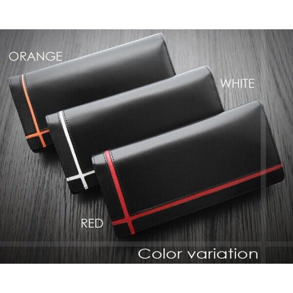 馬革×牛革クロスラインデザイン紳士長財布 UH-1074 【unitedHOMME】メンズ/オレンジライン #flc-uh-1074-or