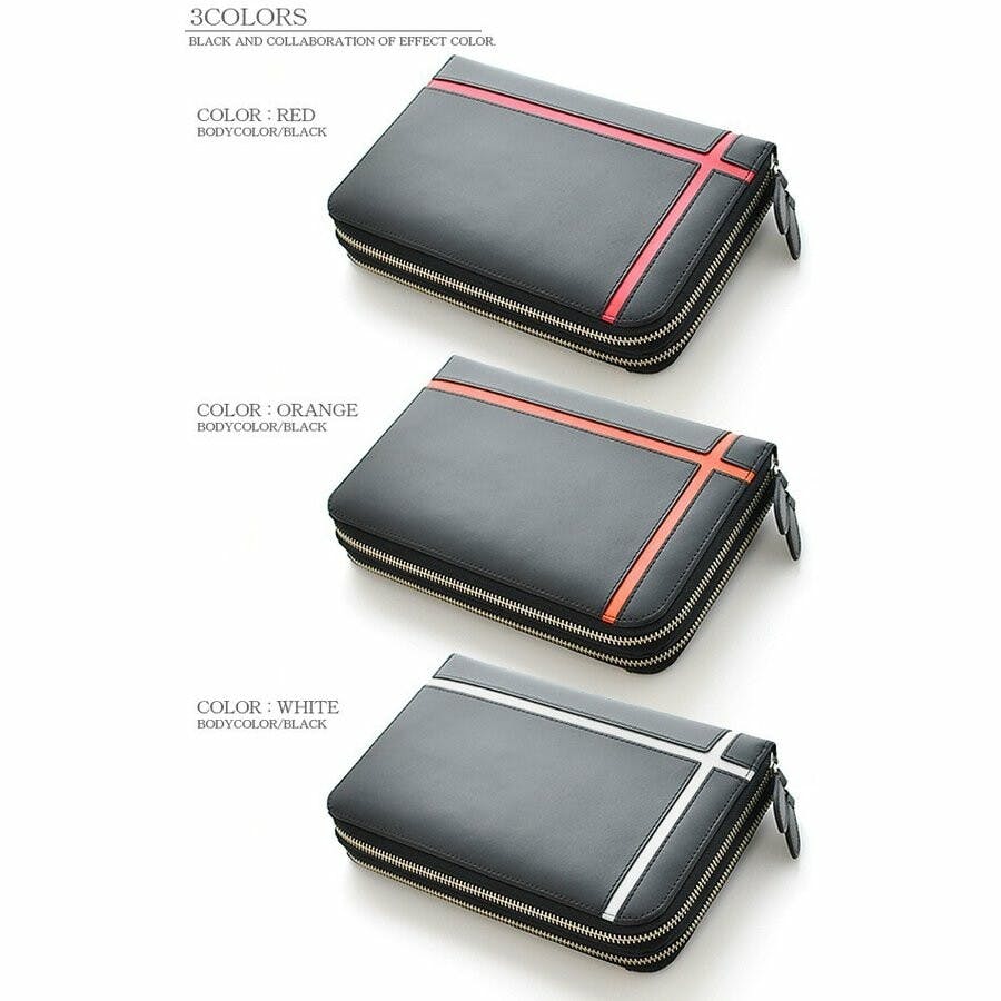 馬革クロスラインデザインダブルラウンドファスナー クラッチバッグ UH-1766 【unitedHOMME】レッドライン #flc-uh-1766rd