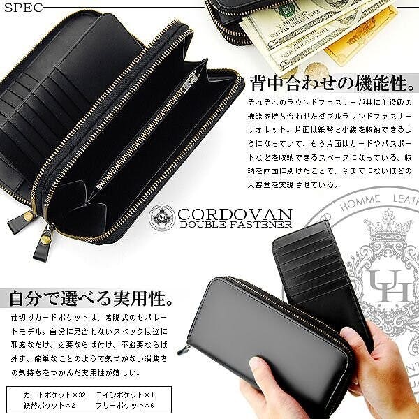 高級馬革×牛革ダブルラウンドファスナー長財布 UHP-1321【unitedHOMME】Wファスナー #flc-uhp-1321bk