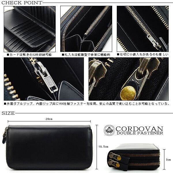 外側に高級馬革、内側に牛革を使用したメンズ長財布です。人気の馬革の高級な光沢感は、デキる男を演出してくれる存在感。革の手触りは非常に滑らかで、使い込むごとに増すその輝きが満足感を高めてくれます。それぞれのファスナーが共に主役級の機能を持ち合わせた、ダブルラウンドファスナー式を採用。財布の片面は紙幣と小銭を収納できるようになっており、もう片面はカードやパスポートなどを収納できるスペースになっております。