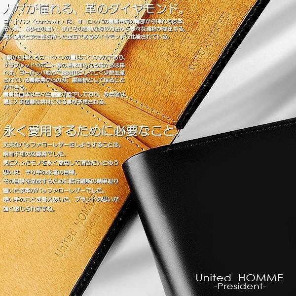 高級馬革×水牛革短財布 UHP-112K 【unitedHOMME】コードバン×バッファロー折財布/ブラック #flc-uhp-112k-bk