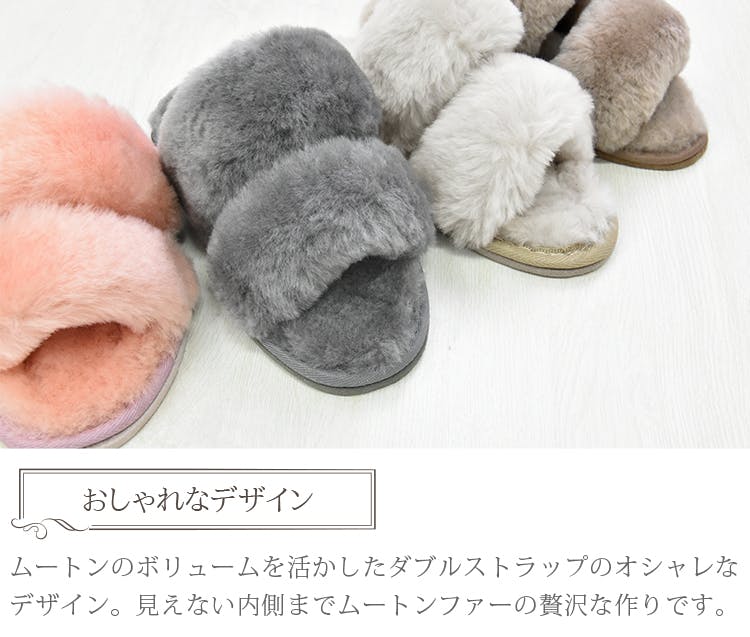 ●甲部分・底部分全てムートンを使用しているふんわり柔らか贅沢な作り●サンダルの底は、すべり止め加工を施しており滑りにくくなっている
