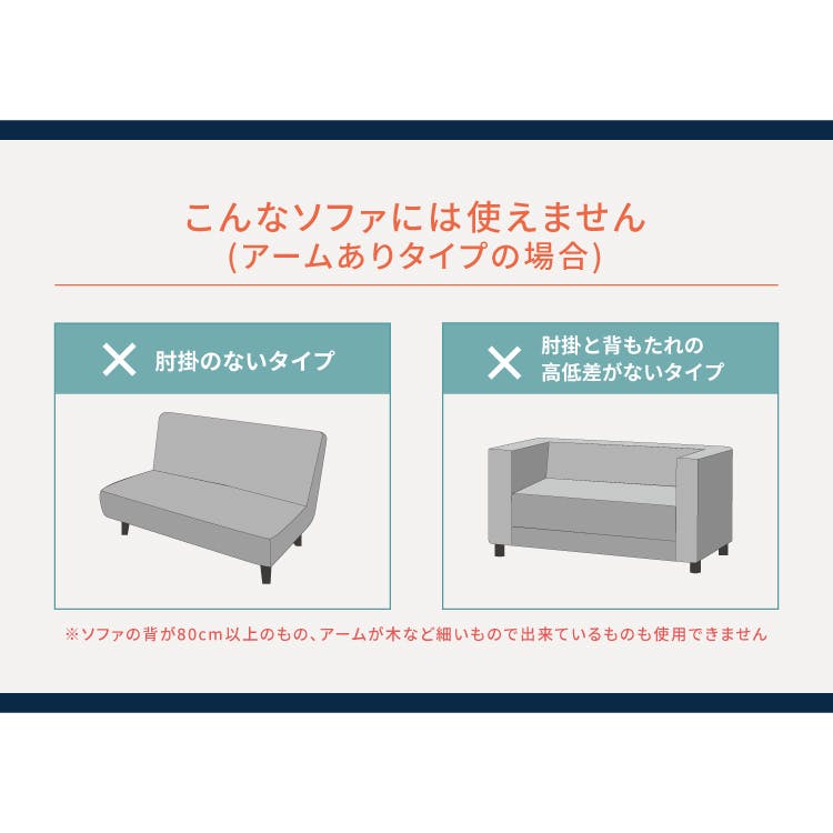 2人掛け用 対応ソファーサイズ: アームあり 幅約120cm~145cm・高さ約70cm~80cmまで