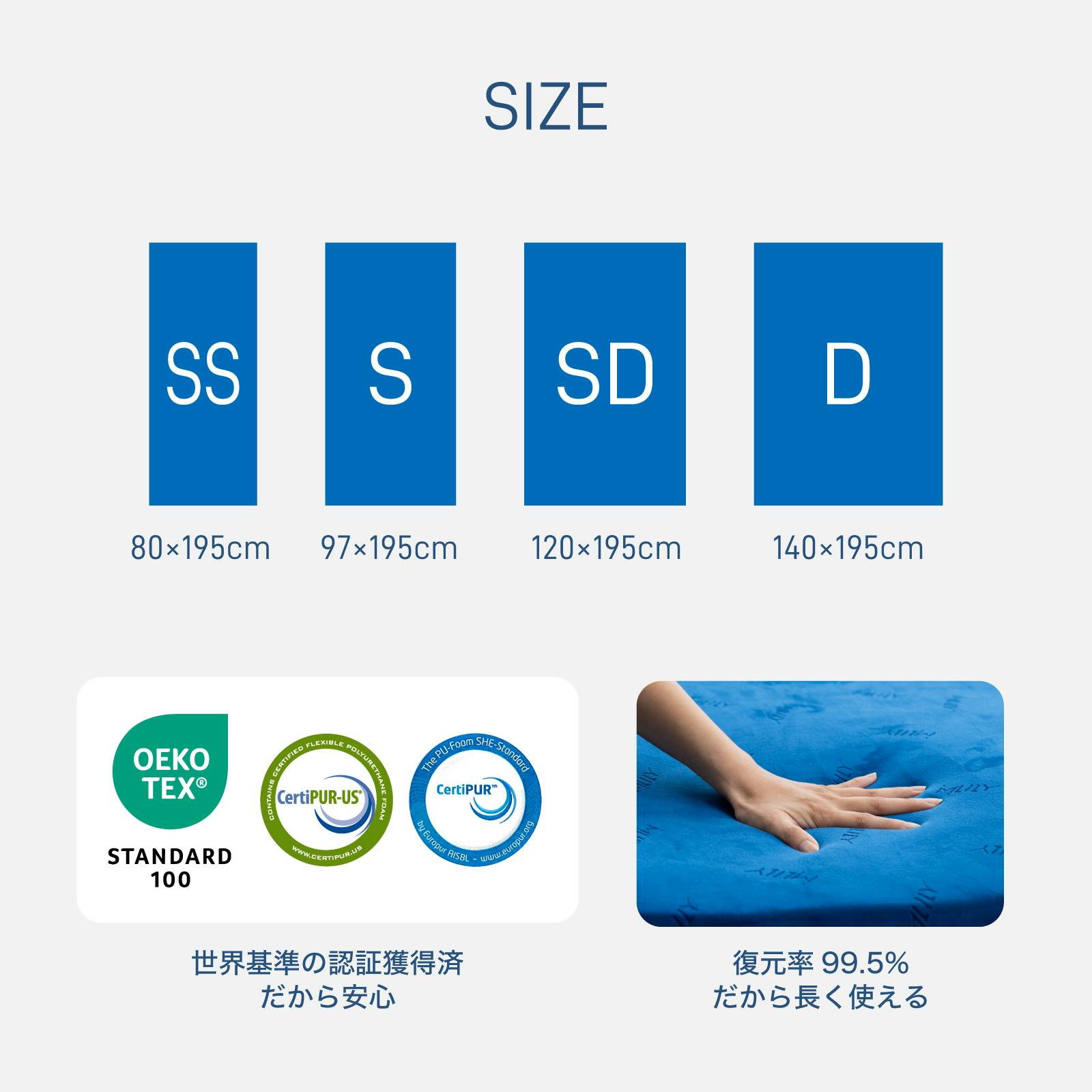 側生地:高級ベロア風生地(ポリエステル90%、ポリウレタン10%)中材:優反発ウレタンフォーム(超高密度50D)
