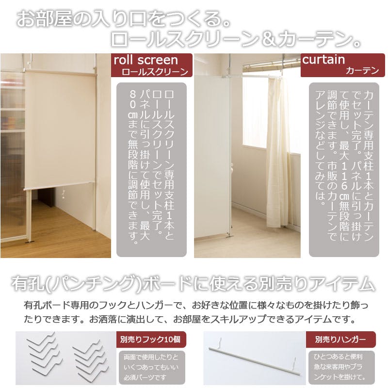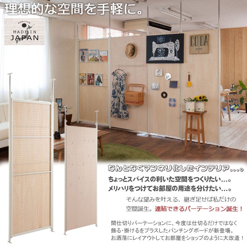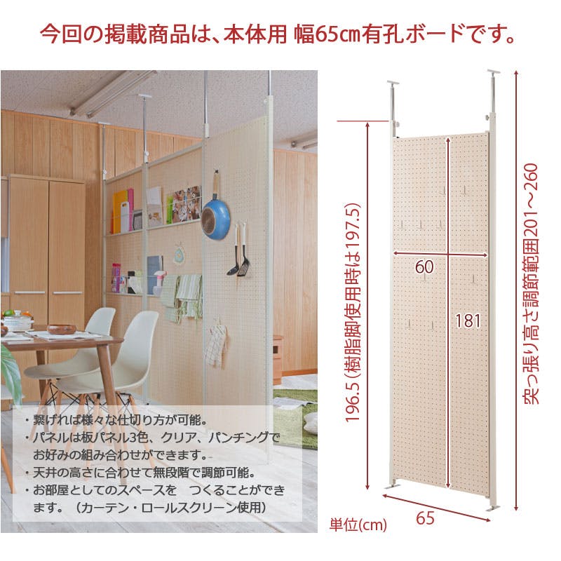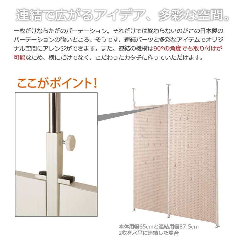並べて使うことができる間仕切り突っ張りパーテーション 本体用 幅65cm 有孔ボード パーテーション 衝立 家具 事務所 オフィス 仕切り 商談スペース 日本製 パンチングボード