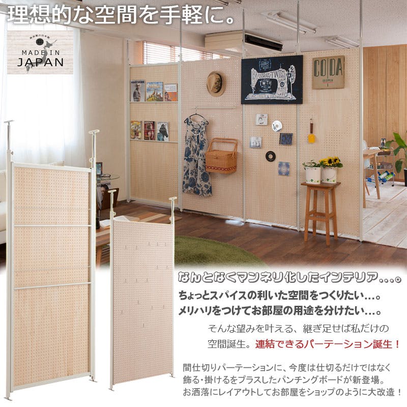 並べて使うことができる間仕切り突っ張りパーテーション 本体用 幅90cm 有孔ボード パーテーション 衝立 家具 事務所 オフィス 仕切り 商談スペース 日本製 パンチングボード