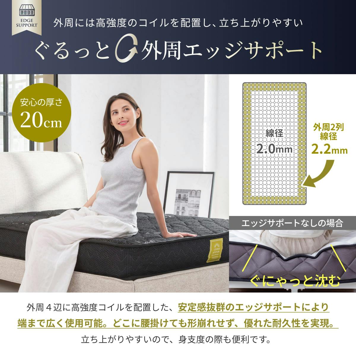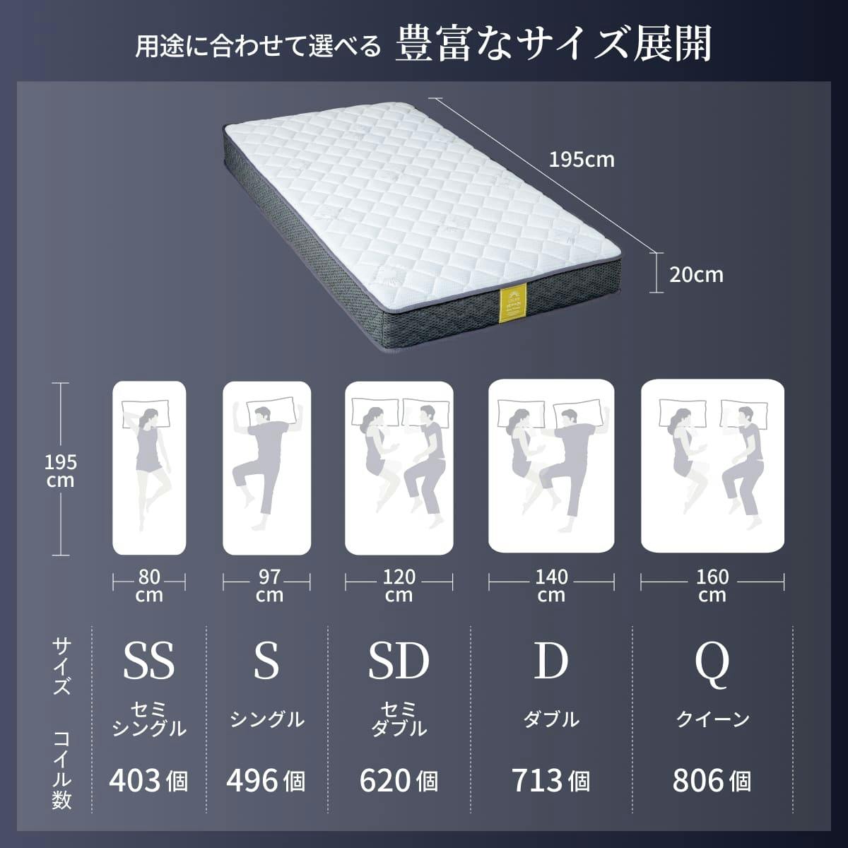 マットレス プレミアム スプリングマットレス 極厚 20cm GOKUMIN ポケットコイルベッドマット シングル セミダブル セミシングル ダブル クイーン ベッドマット ベッドマットレス ポケットコイル 高反発 硬め 高反発ウレタン