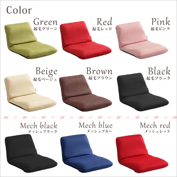 インテリア イス・チェア イス チェア 座椅子 起毛 メッシュ リクライニング座椅子 14段階にリクライニング コンパクト 日本製