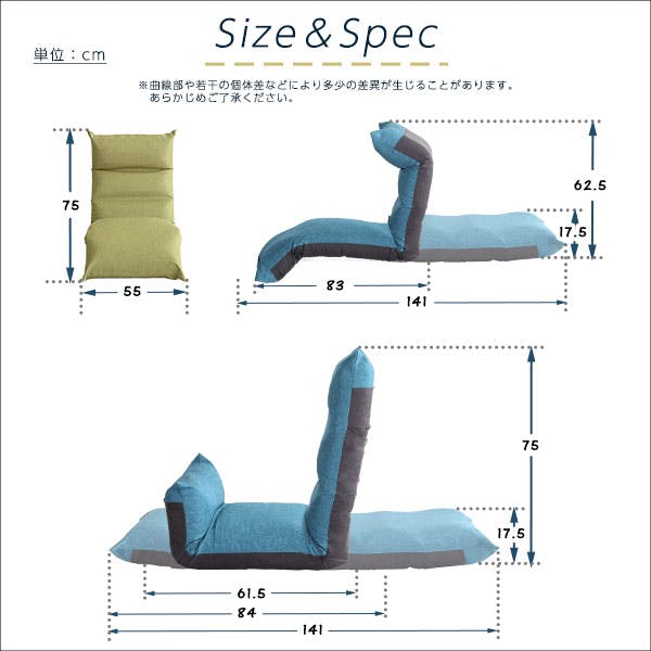 【素材】 側生地:ポリエステル 100% 構造部材:スチールパイプ、ポケットコイルスプリング 中身:ウレタンフォーム 【商品サイズ】 W55×D84-1410×H17.5-75cm 【商品重量】 8kg 【梱包サイズ】 52×32×52cm 【梱包重量】 9kg 【生産国】 日本 【カラー】 BE、BR、BL、GE、TB、GY 【その他】 完成品