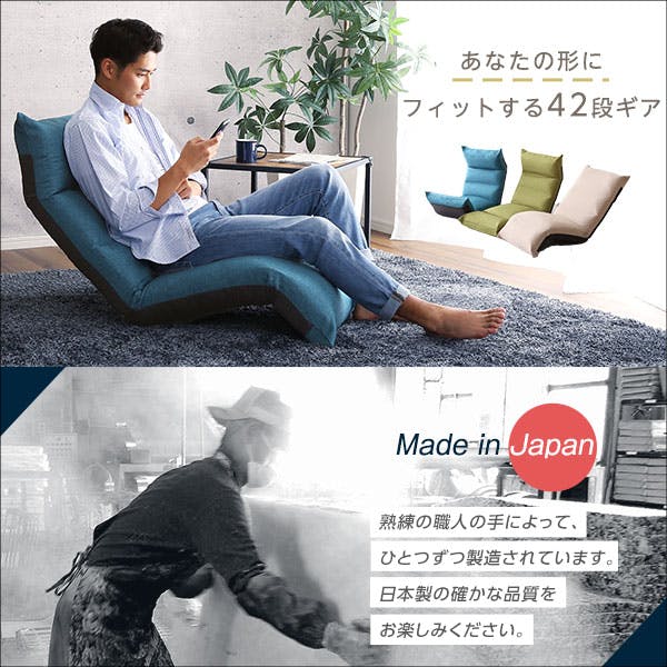 リクライニング座椅子 ポケットコイル ギアチェンジ ヘッド可動 日本製 折り畳み式 耐久性 弾力 コンパクト 収納 フィット