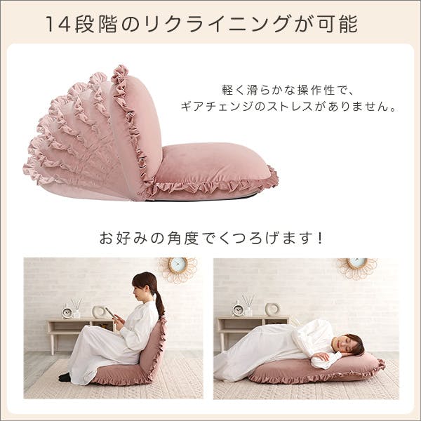 座椅子 ベロア ベルベット かわいい コンパクト 小さい フリル おしゃれ くすみカラー 椅子 イス チェア リクライニング ピンク グリーン ホワイト グレー ベージュ