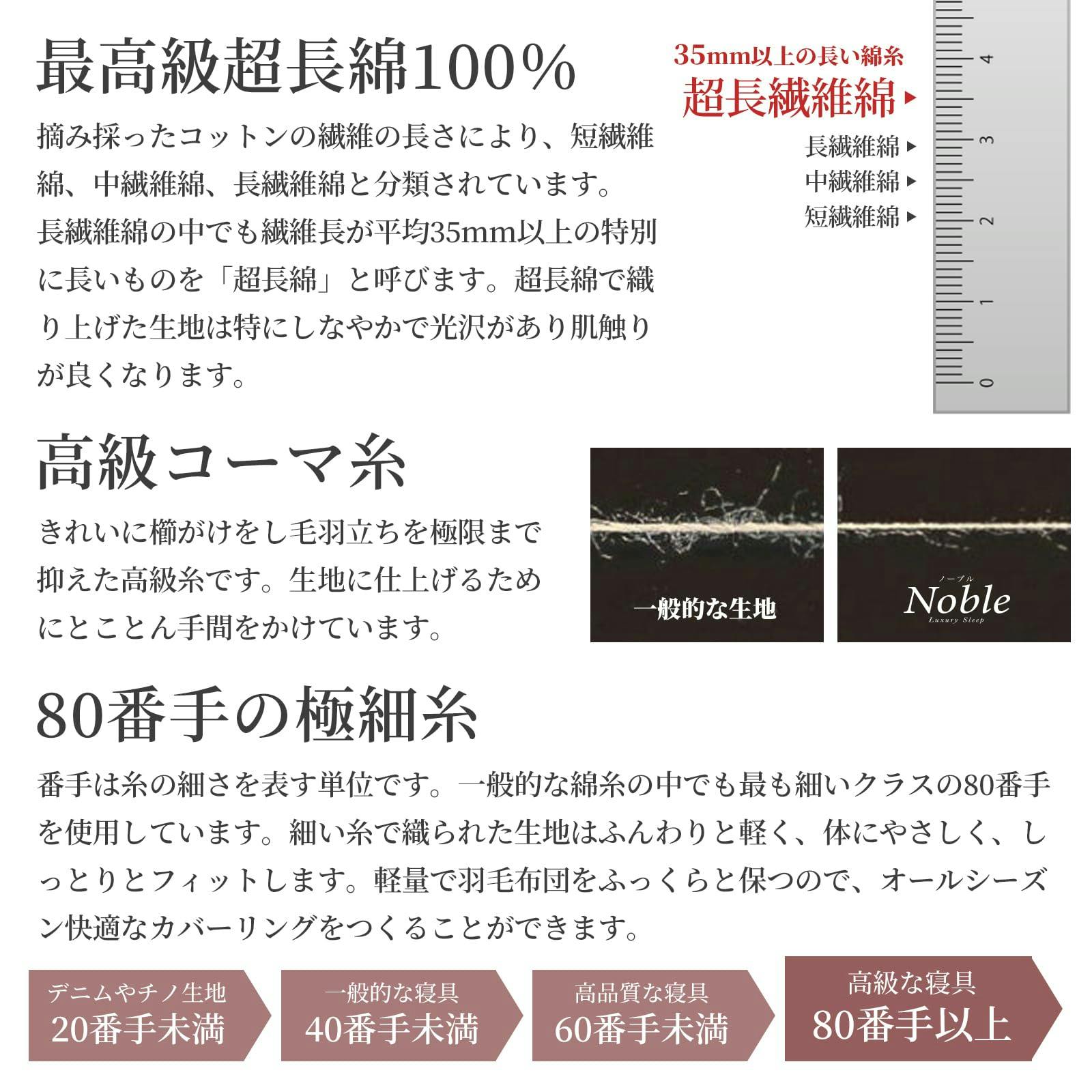 高密度生地使用の超長綿サテン布団カバーです。高級ホテルのような品のある艶とシルクのような滑らかさが特徴