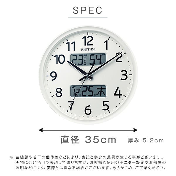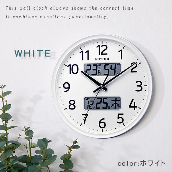 掛け時計 電波時計 温度湿度計・カレンダー表示 ホワイト/カラー:ホワイト/ #sh-11-03sr03--wh 【4535306209582】