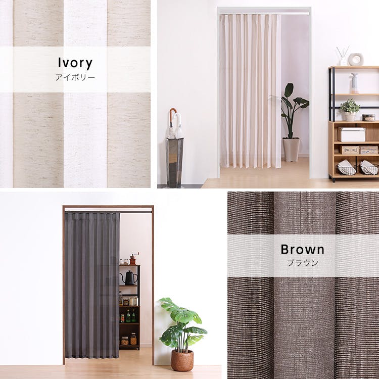 つっぱり式のファブリックアコーディオンカーテン(麻混タイプ) 100×174cmサイズ!つっぱり式だから簡単に取り付けできます!廊下、キッチン、洗面所など家の中の様々なところでご使用できます!ネジを使わないので賃貸にもおすすめ!