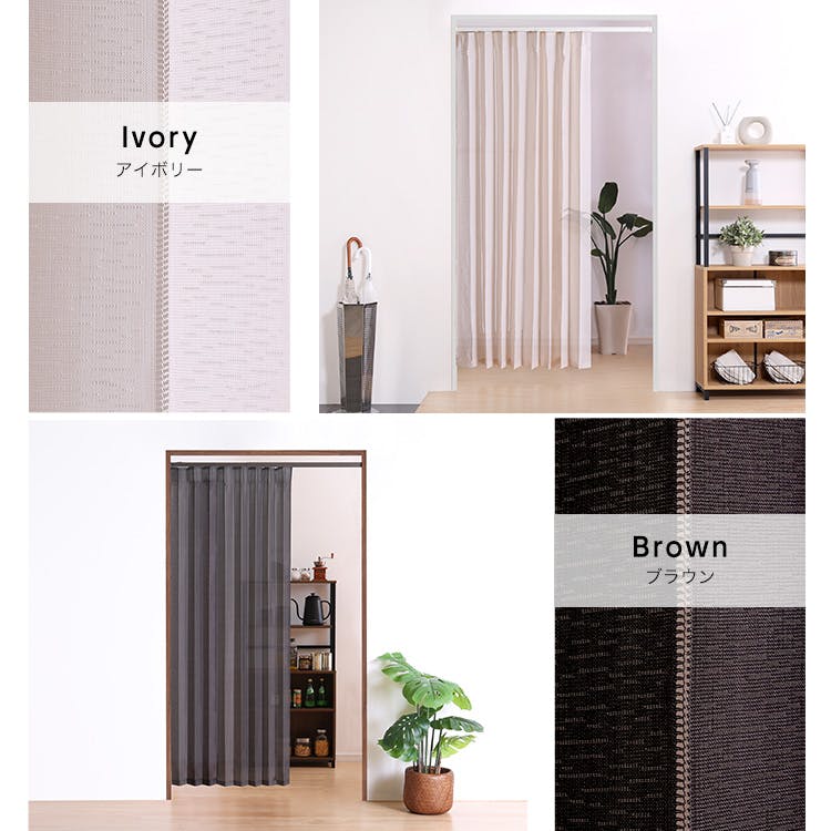 簡単に間仕切り。見られたくない場所をスマートに目隠し。急な来客時の目隠しとしても使えます。マグネットでしっかり閉まる。端はマグネット付きでしっかりと閉めることができます。すっきりスリム幅。たたむとコンパクトな幅に収まります。出入りの邪魔になりません。穴を開けないから賃貸でも大丈夫!突っ張りタイプのレールを使用しているので、壁に穴を開ける必要がなく、賃貸住宅でも安心してご使用いただけます。