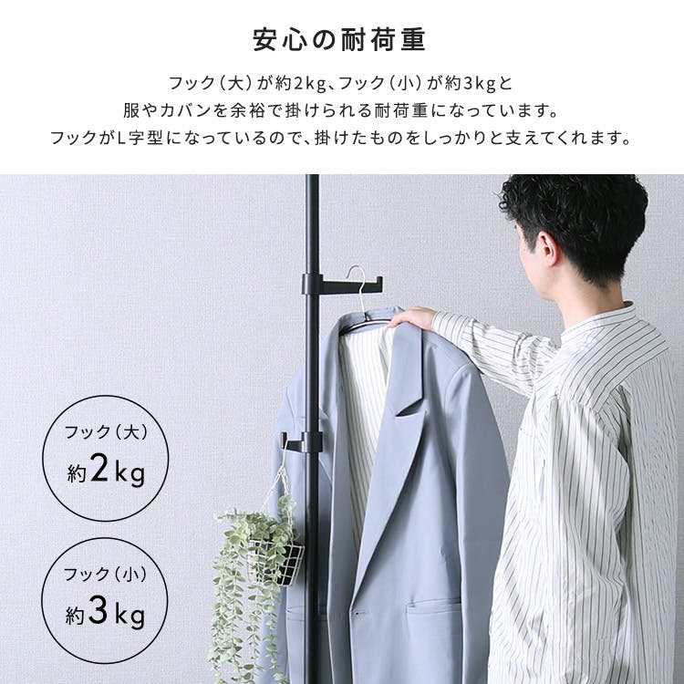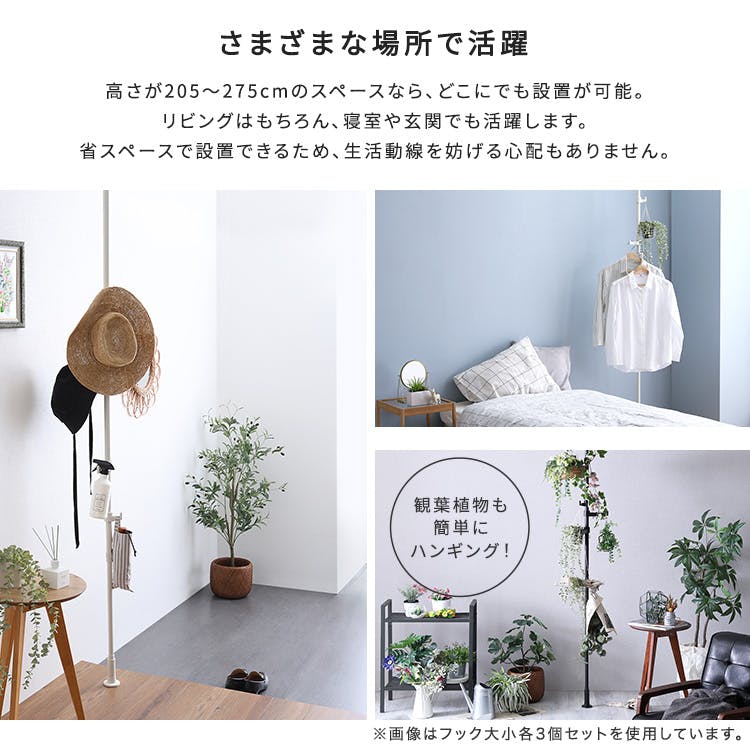 ポール長さ:(約)205~275cm ポール径:(約)2.5cm フックを含めた最大幅:(約)28cm