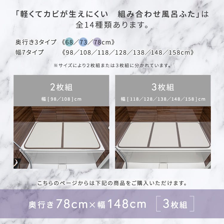 軽くてカビが生えにくい組み合わせ風呂ふた 幅78×奥行き148cm(3枚組)/カラー:ホワイト/ #sh-31-pbf78-148--wh 【4535306248024】