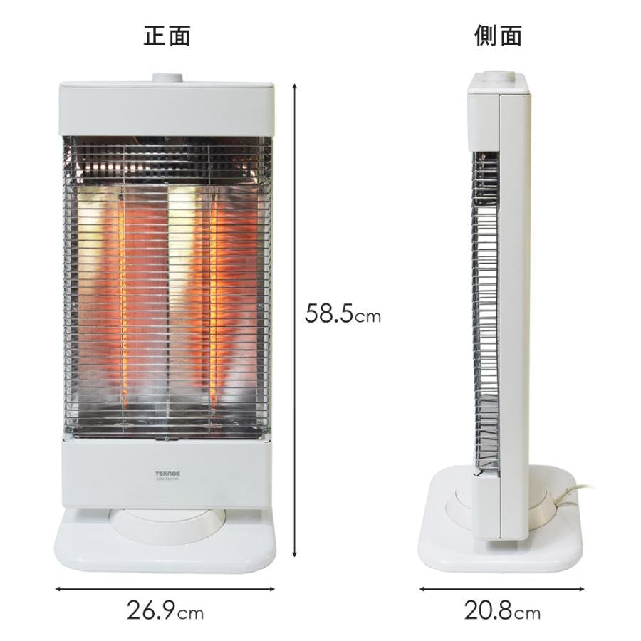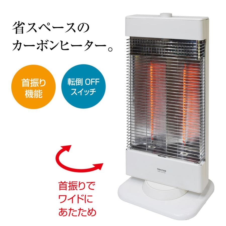 カーボンヒーター 薄型スリムタイプ 900W ヒーター 電気ストーブ 首振り 速暖 転倒自動OFF TEKNOS テクノス CHM-3301(W) ホワイト