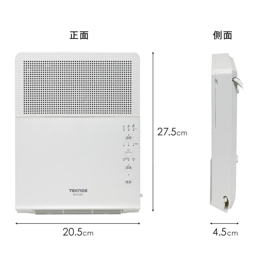 ヒーター 壁掛け セラミックヒーター 温風 送風 超軽量 セラミックヒーター 壁掛け用 2段階切替 800W/400W TEKNOS テクノス WTS-801