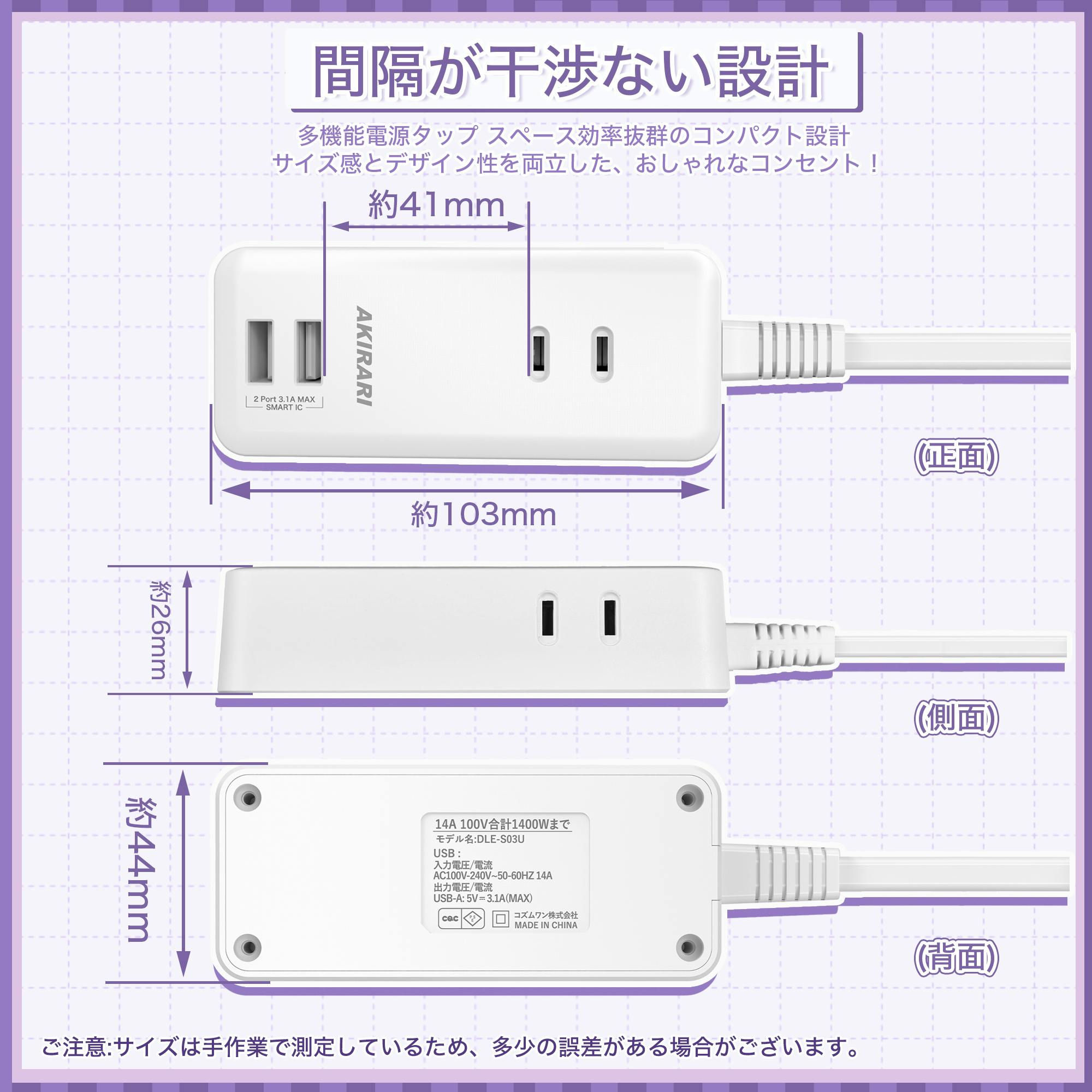 コンセント 延長コード 2m 短い 電源コード タップ 5個口 OAタップ安全 電源タップ usb たこあしコンセント テーブルタップ 3個AC 2個USB-A タコ足配線 蛸足 隙間 薄型