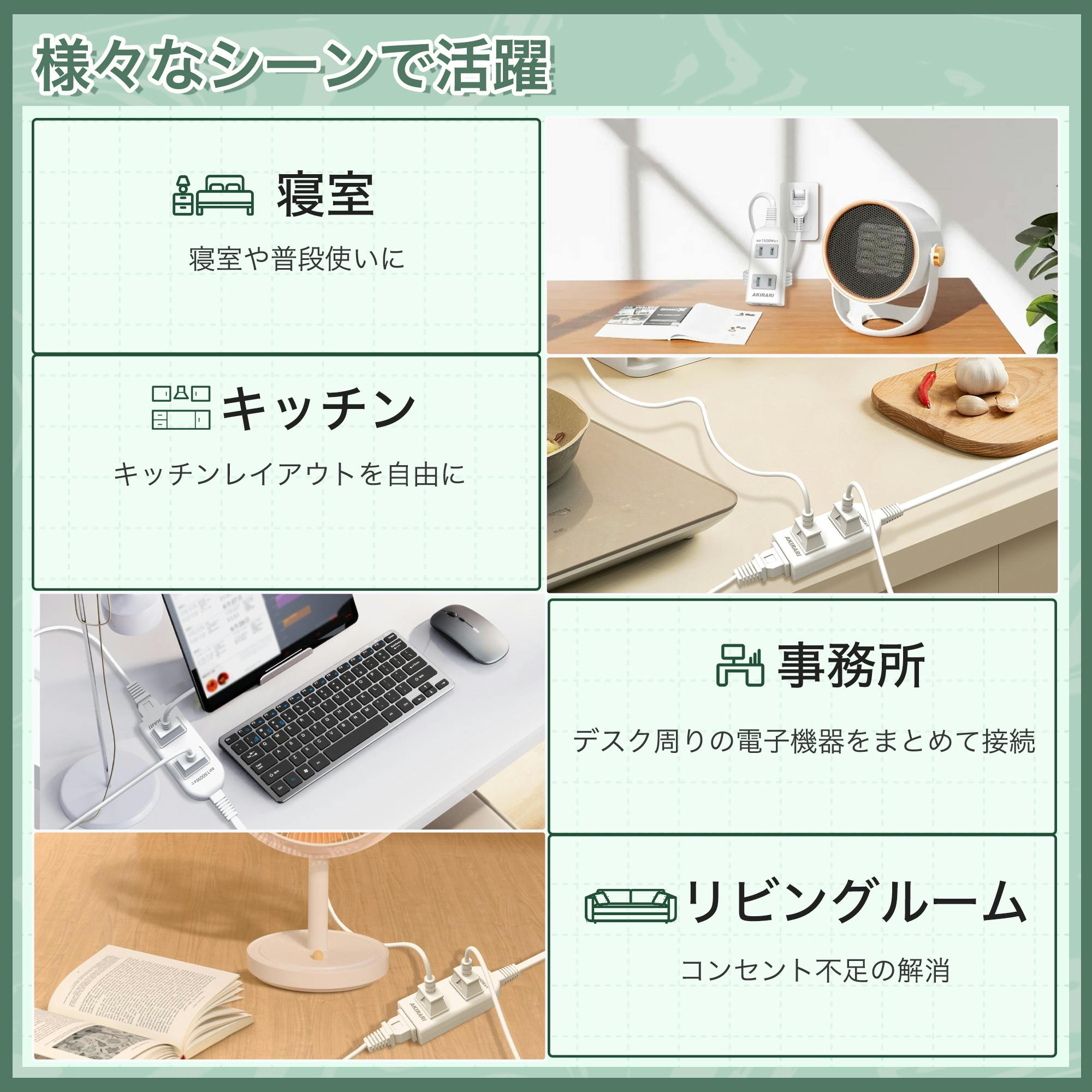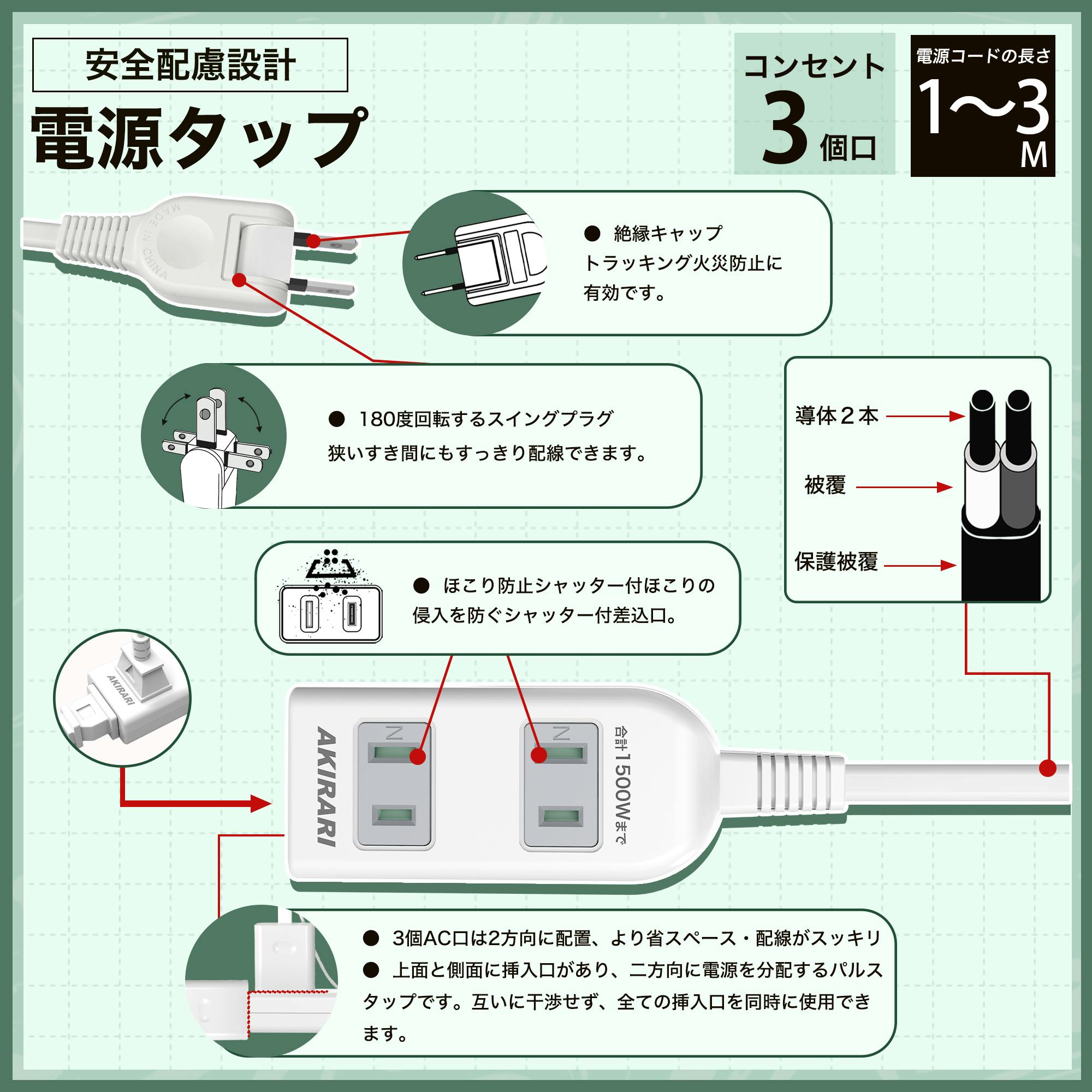 コンセント 延長コード 2m 短い 電源コード コンセントガード ほこりシャッター コンセント タップ 3個口 OAタップ安全 ベビーガード 電源タップ usb たこあしコンセント テーブルタップ 3個AC oa タコ足配線 蛸足 隙間