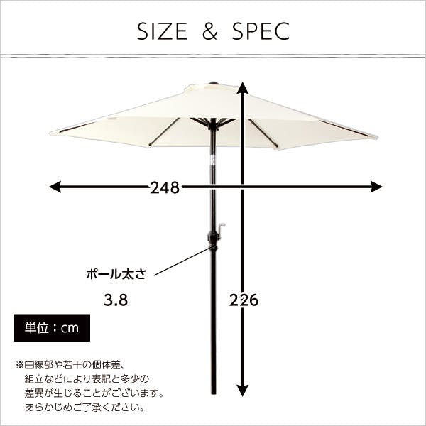 オープンカフェ風パラソル 248cm【ノクターン-NOCTURNE-】パラソル 撥水 アルミ