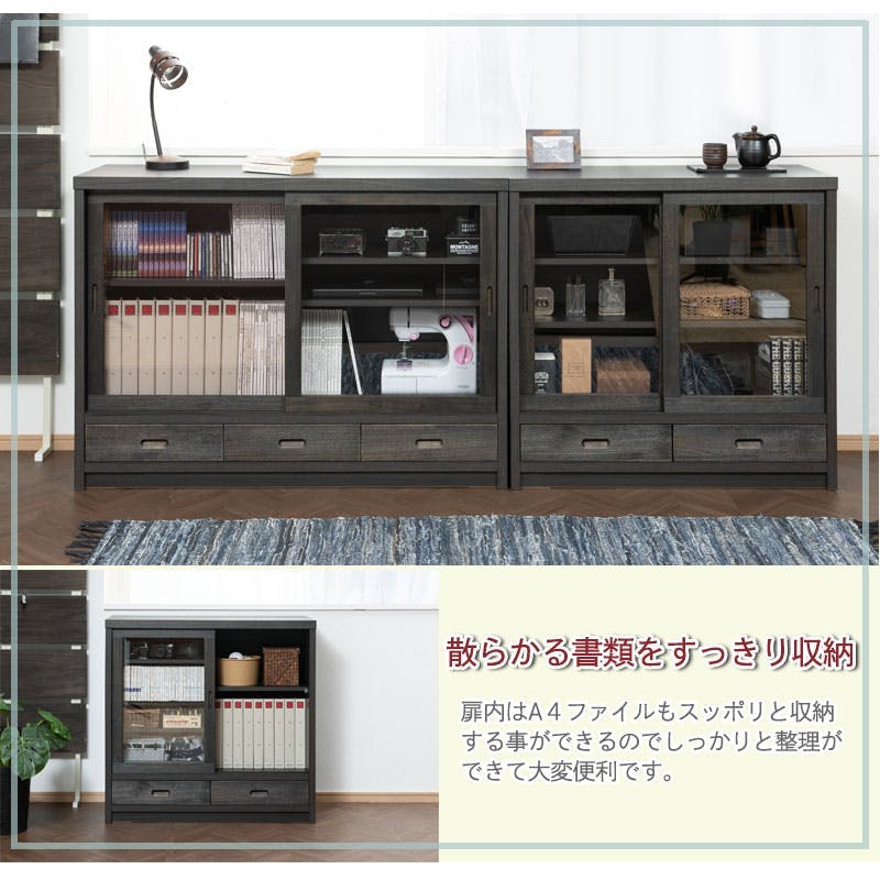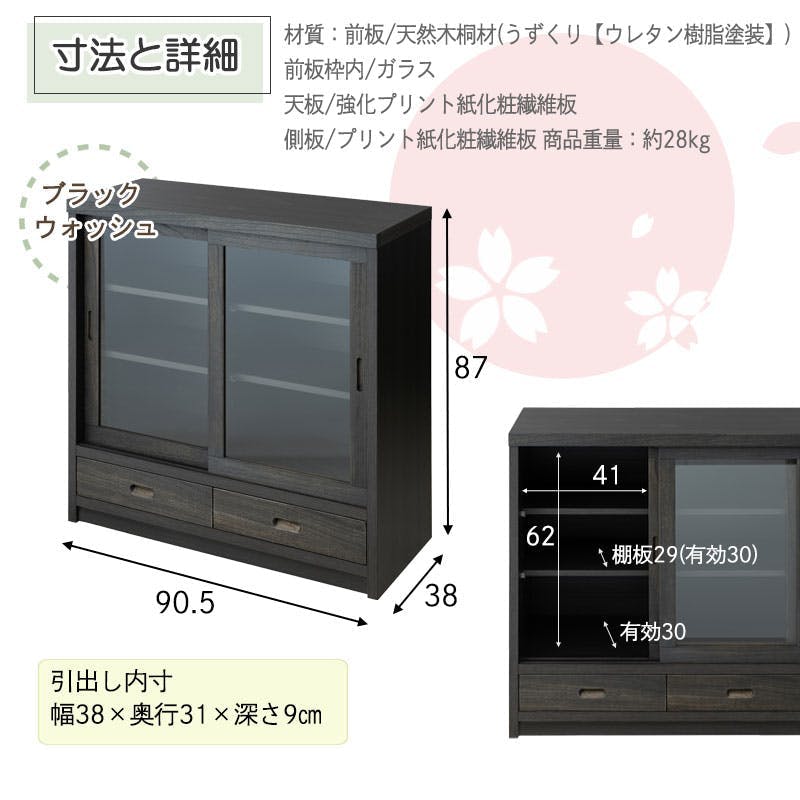 【京】 幅90.5 奥行38 高さ87cm ガラスタイプ ブラック 桐 完成品 日本製 国産 キャビネット A4 A4収納 リビング うづくり仕上げ 木目 木製 引戸 引き戸 省スペース 和風キャビネット 収納 引き戸 ディスプレイ棚 モダン 和 みやこ