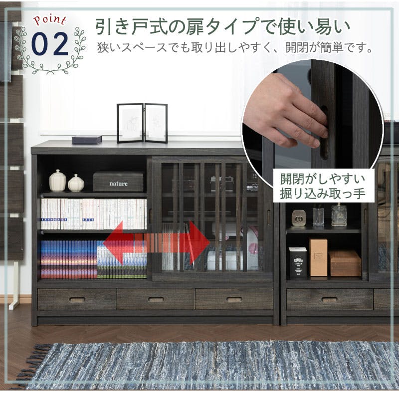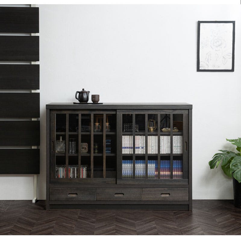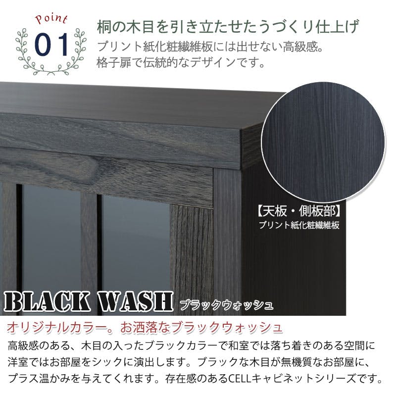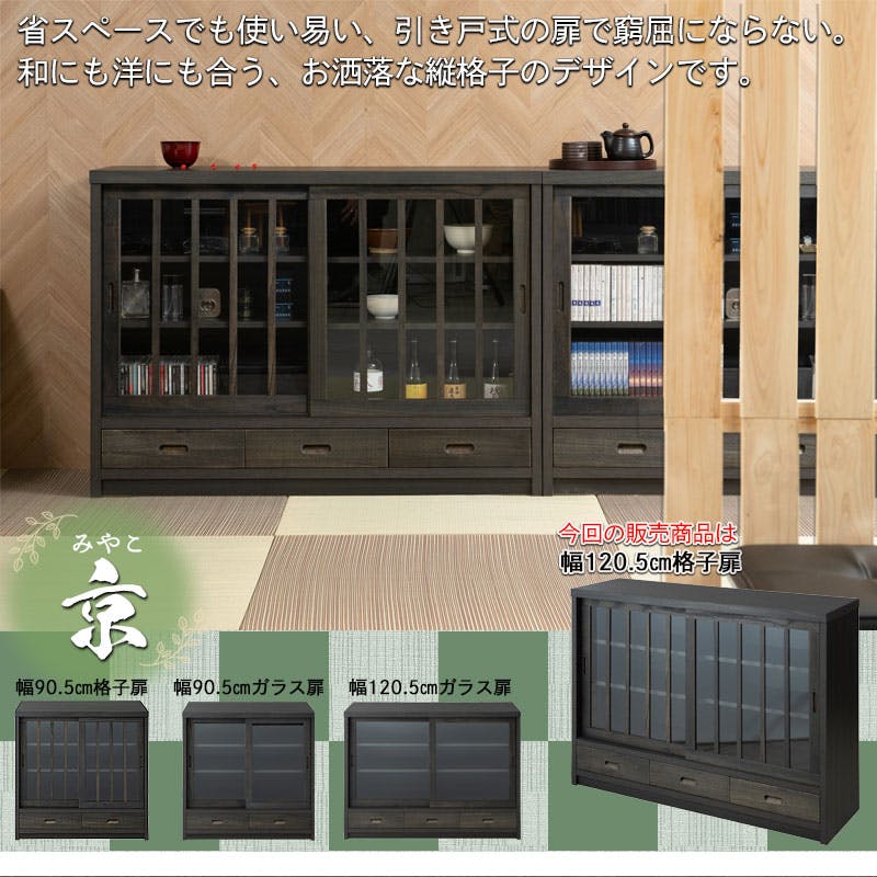 【京】 幅120.5 奥行38 高さ87cm 格子タイプ ブラック 桐 完成品 日本製 国産 キャビネット A4 A4収納 リビング うづくり仕上げ 木目 木製 引戸 引き戸 省スペース 和風キャビネット 収納 引き戸 ディスプレイ棚 モダン 和 みやこ