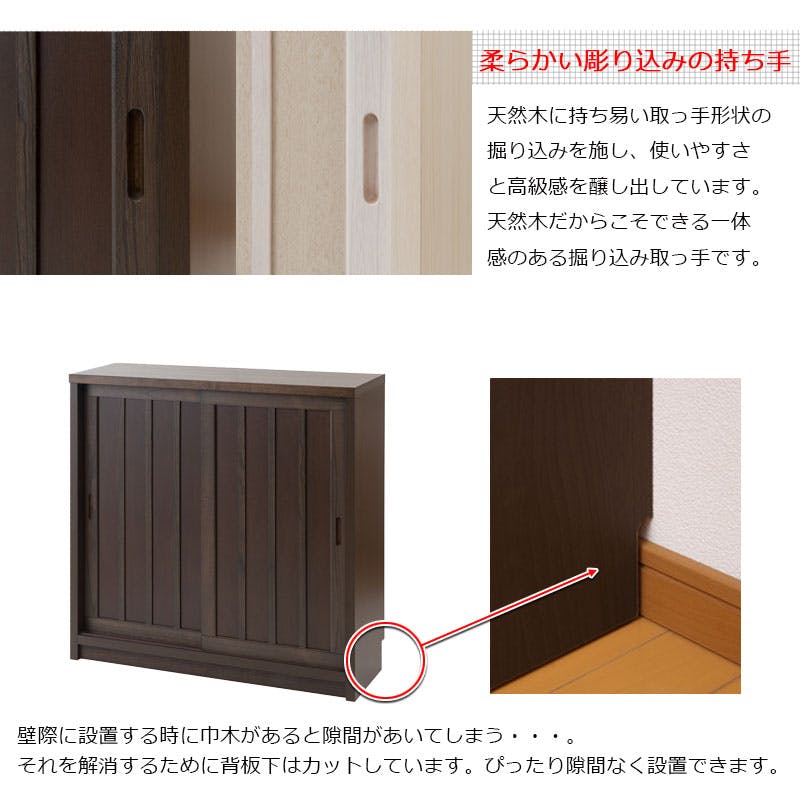 【Tatis】幅90.5 奥行30 高さ86.5 天然木桐材の格子板引戸キャビネット カウンター下収納 キッチン収納 ホワイト 日本製 国産 完成品 木製 桐